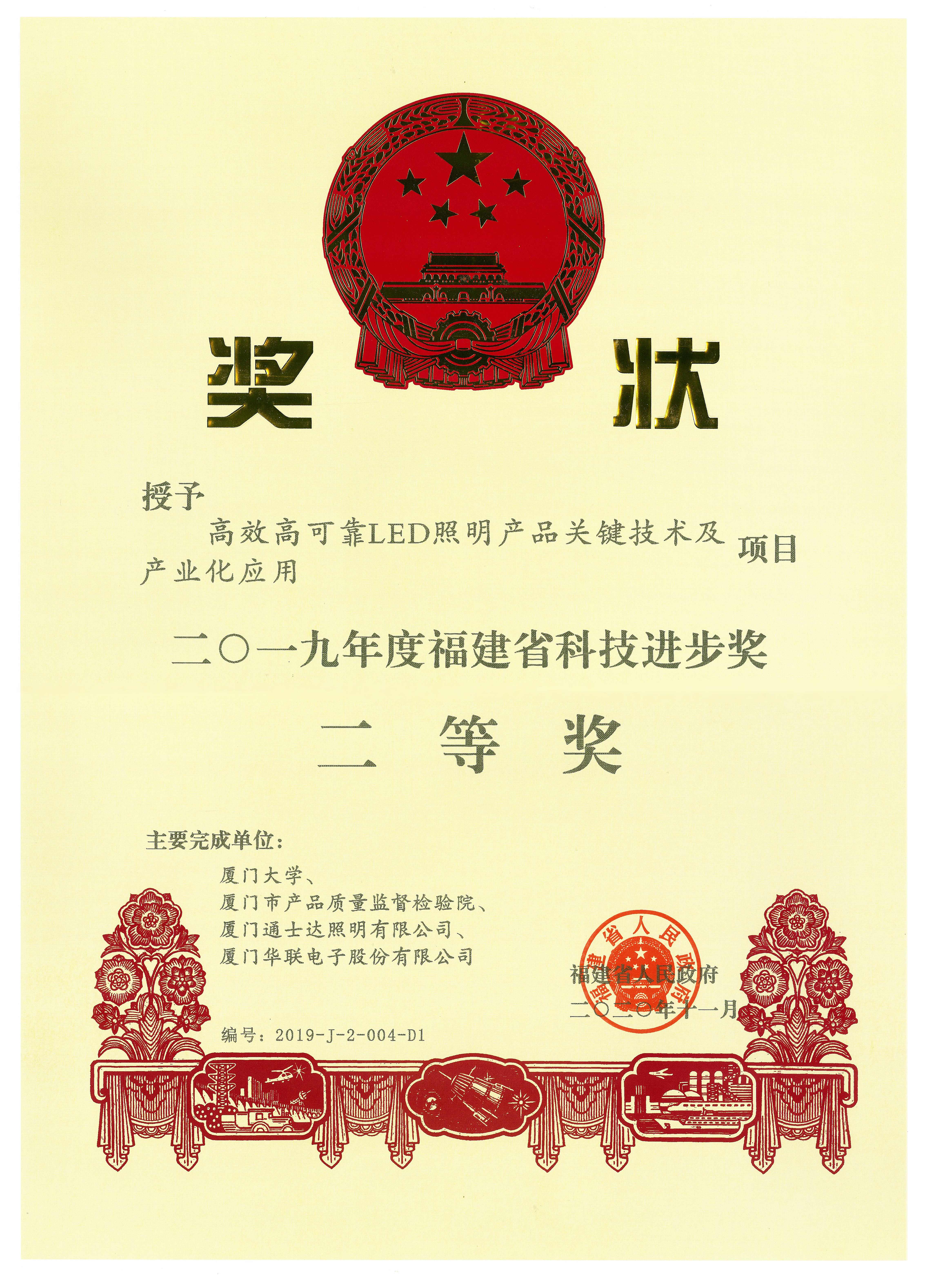 2019 Fujian Provincial Science and Technology Progress Second Prize