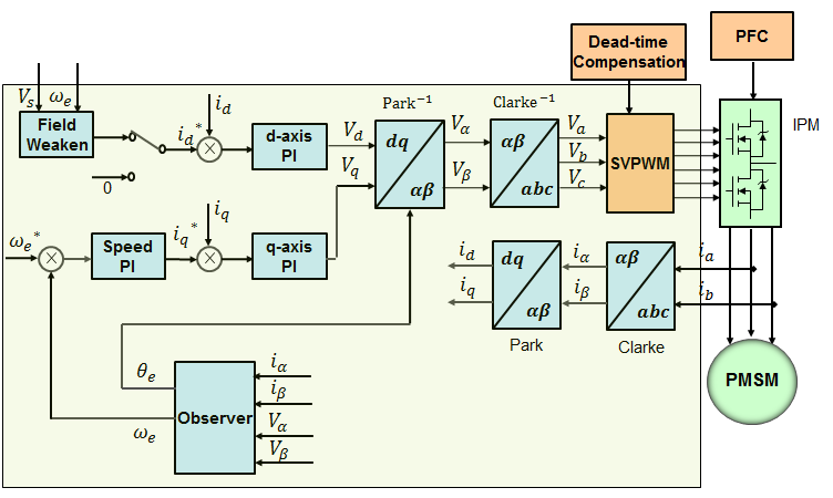 FOC 矢量控制,三電阻采樣,分立IGBT ,內(nèi)置或外置驅(qū)動(dòng)板;功率 90W ,轉(zhuǎn)速 900~3600RPM 。